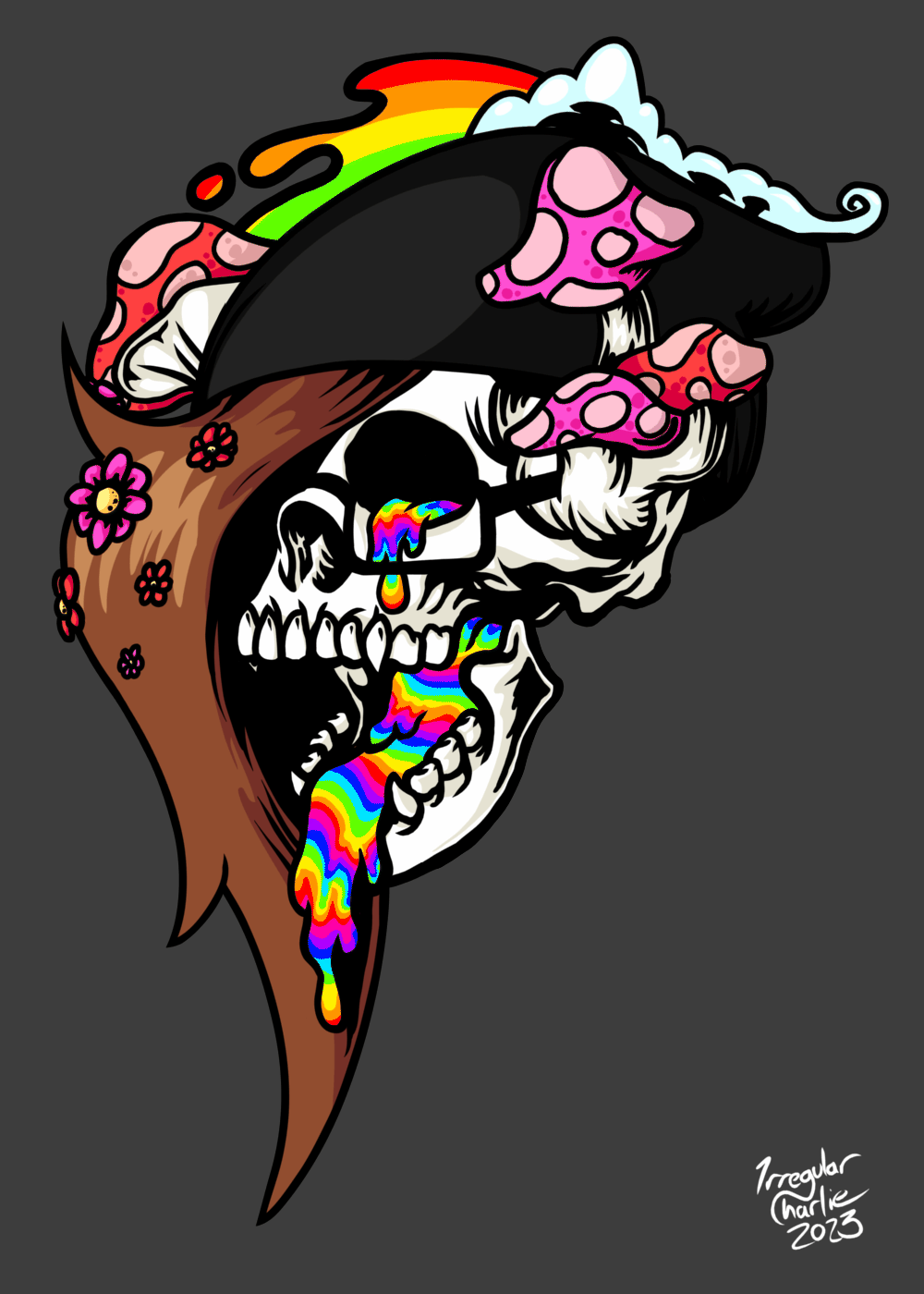 I am Charlie Dix (also known as IrregularCharlie) and though I am currently depicting myself as a floating skull seemingly being invaded by a fungal species that forces me to puke rainbows, rest assured I am actually human.